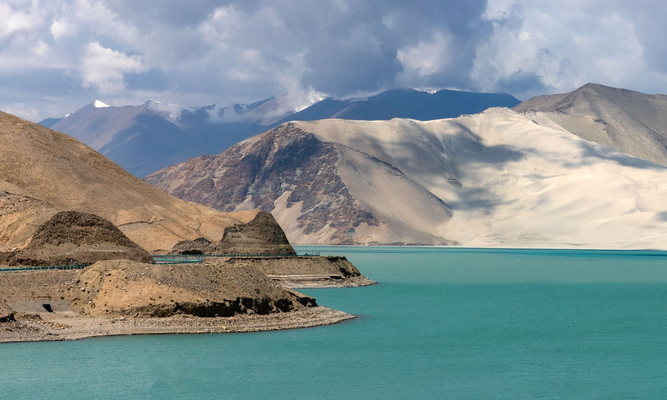 帕米尔的银沙碧玉:白沙湖 在帕米尔高原的雪山环抱中,喀克拉克湖畔静卧着一片梦幻奇观——白沙湖。这里没有一棵树木,却拥有最纯粹的色彩交响:一侧是终年积雪的公格尔峰,一侧是绵延数公里的银色沙山,湖水在光影下变幻着蒂芙尼蓝、翡翠绿与牛奶白的层次。 这座高原湖泊的奇观源于自然伟力。银白沙山是千万年来大风搬运沙尘的杰作,沙粒在湖岸堆积成山,湖水则来自雪山融水,清澈凛冽。沙与湖的共生颠覆了地理常识,形成“水映银沙,沙绕碧湖”的绝景。白沙山随日光流转,从柔和的银白变为耀眼的金黄;湖水因深浅与矿物质呈现魔幻色调,与远处雪峰构成一幅超现实的立体画卷。 沿中巴友谊公路(喀喇昆仑公路)驶近,美景如画卷徐徐展开。观景台上,白沙湖的纯粹与静谧足以抚平一切纷扰。这里不仅是地理奇观,更是帕米尔精神的象征——在最荒凉处,孕育出最极致的美丽,讲述着高原上沙与雪、刚与柔的永恒对话。