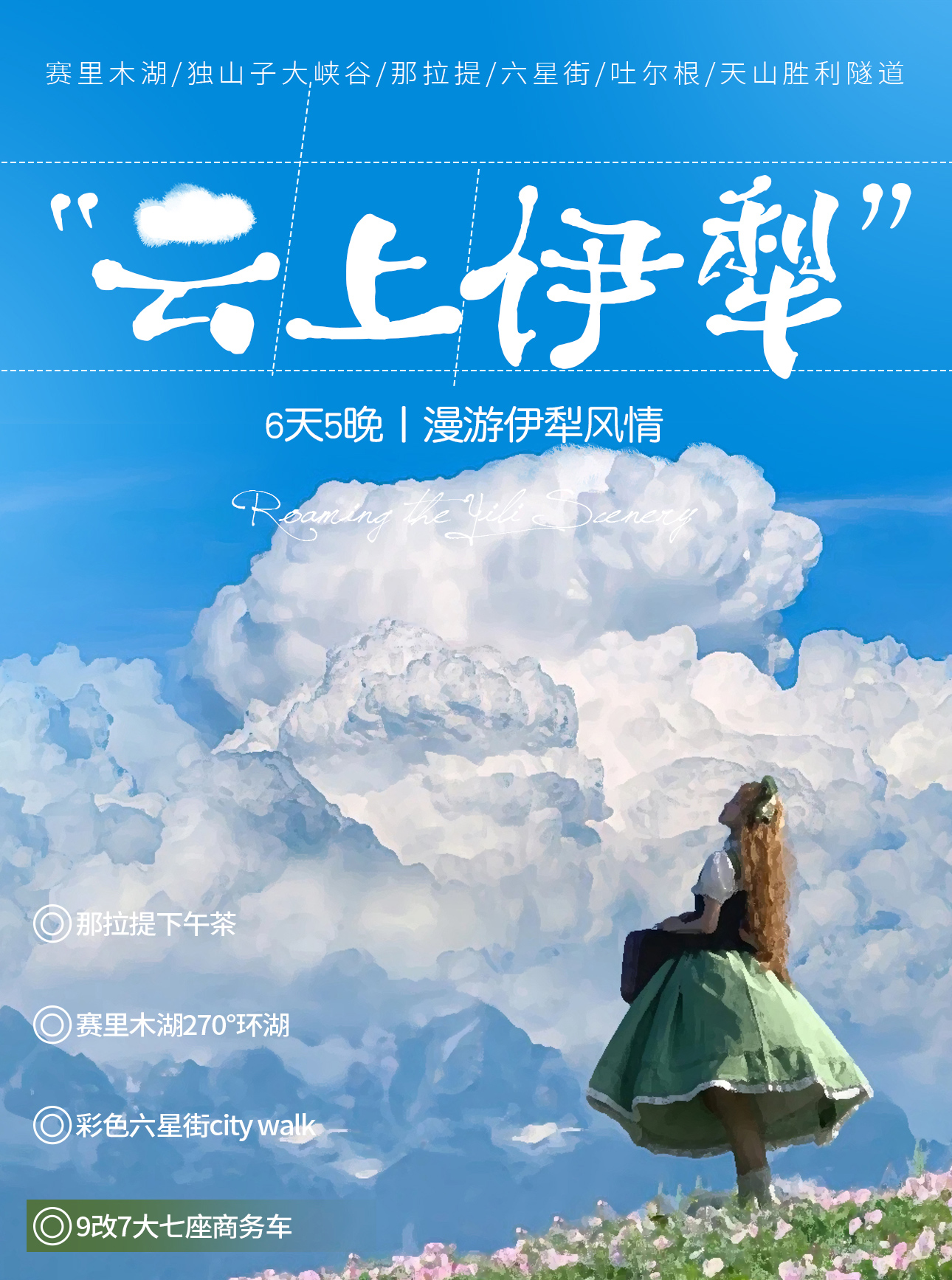 ➍门票:赛里木湖门票+天马文化园门票+夏塔门票及区间车+那拉提空中门票及区间车+独山子大峡谷门票,沿途免费景点不去不退费。