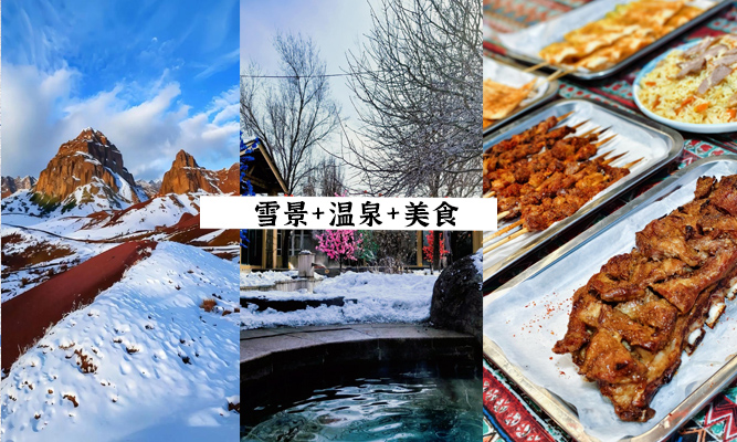 滑完雪,可以去五彩湾或古海温泉泡个澡,外边冷里边热,特别解乏。
